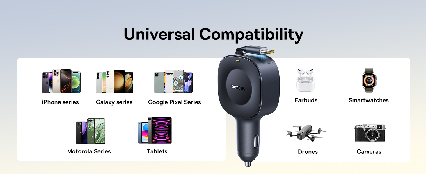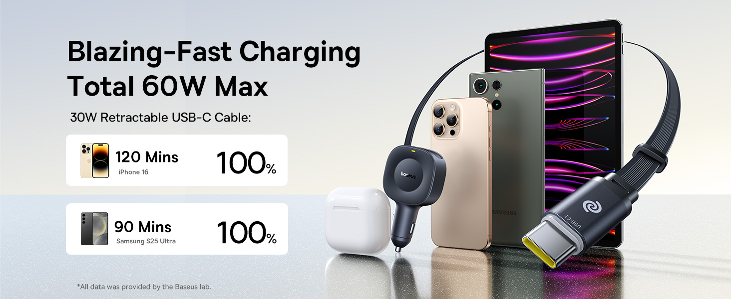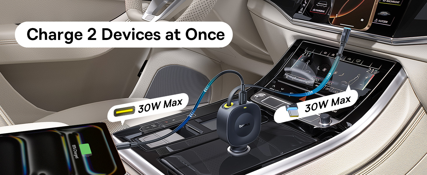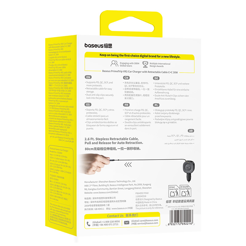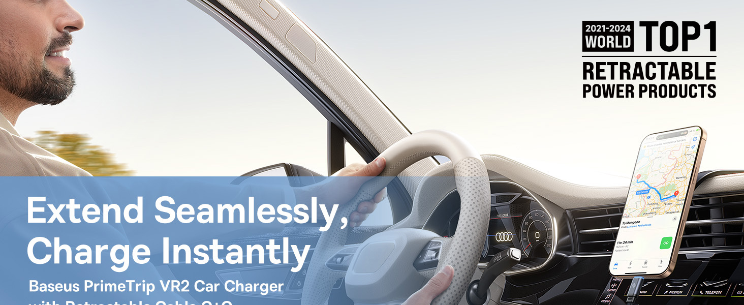1x Автомобильная зарядка Baseus PrimeTrip VR2 C+Retractable C Cable 30W