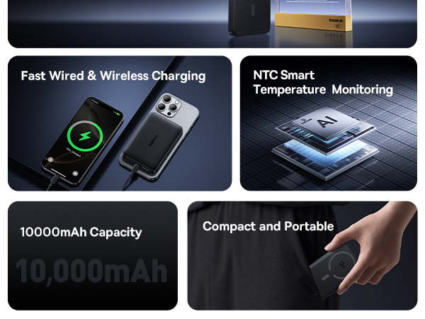 1x Внешний аккумулятор + Беспроводная зарядка Baseus EnerFill FM12 Ultra-Mini Magnetic C+Qi2 10000mAh 22.5W (MagSafe)