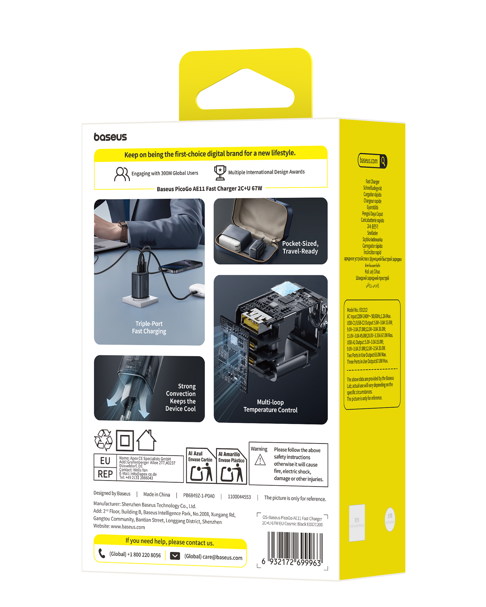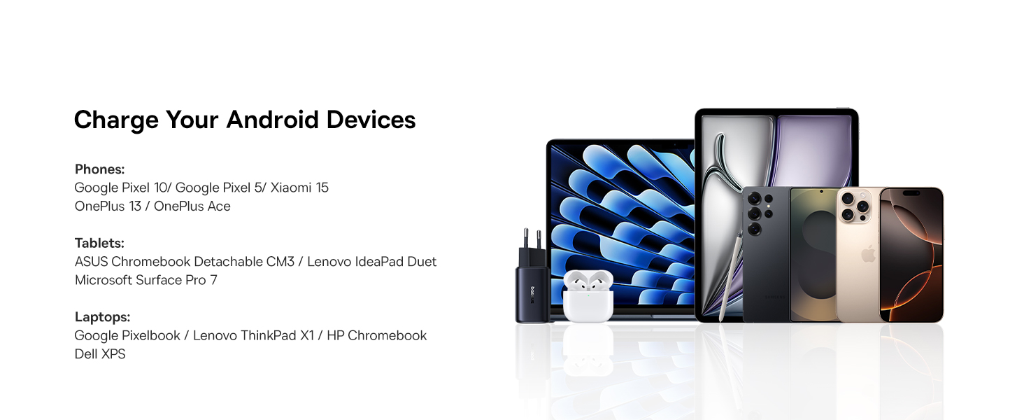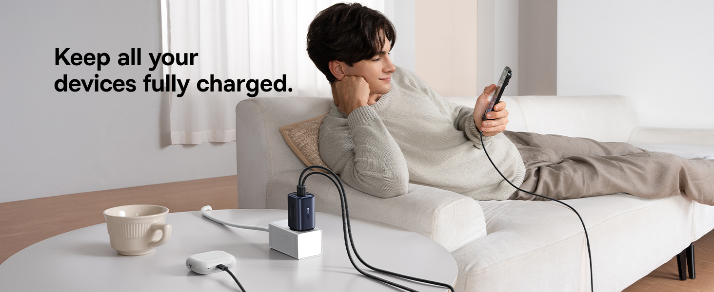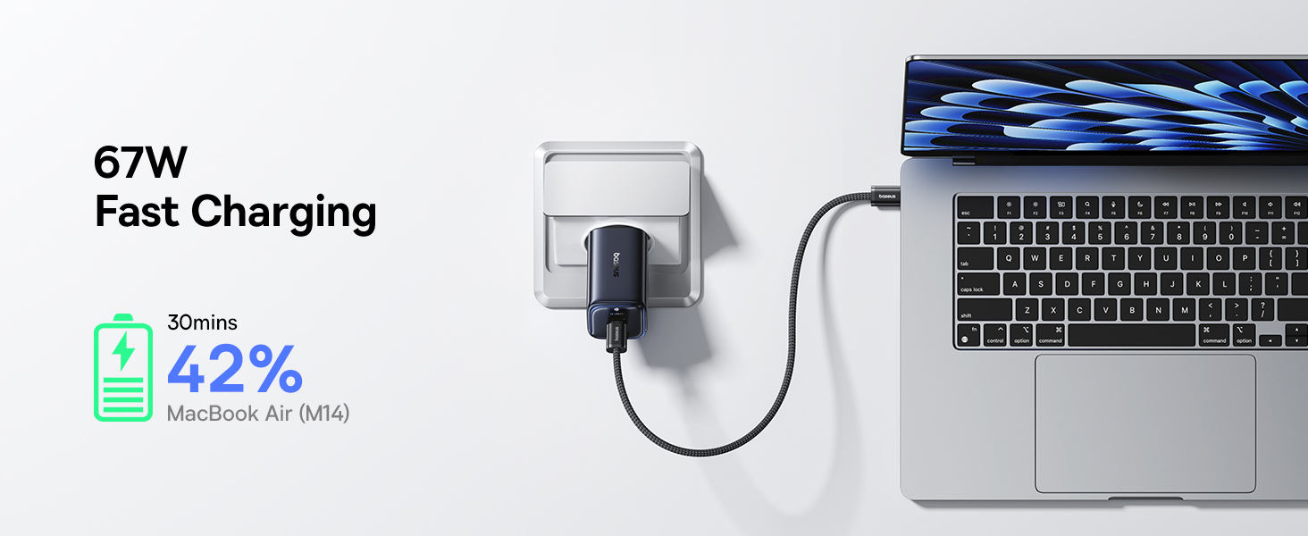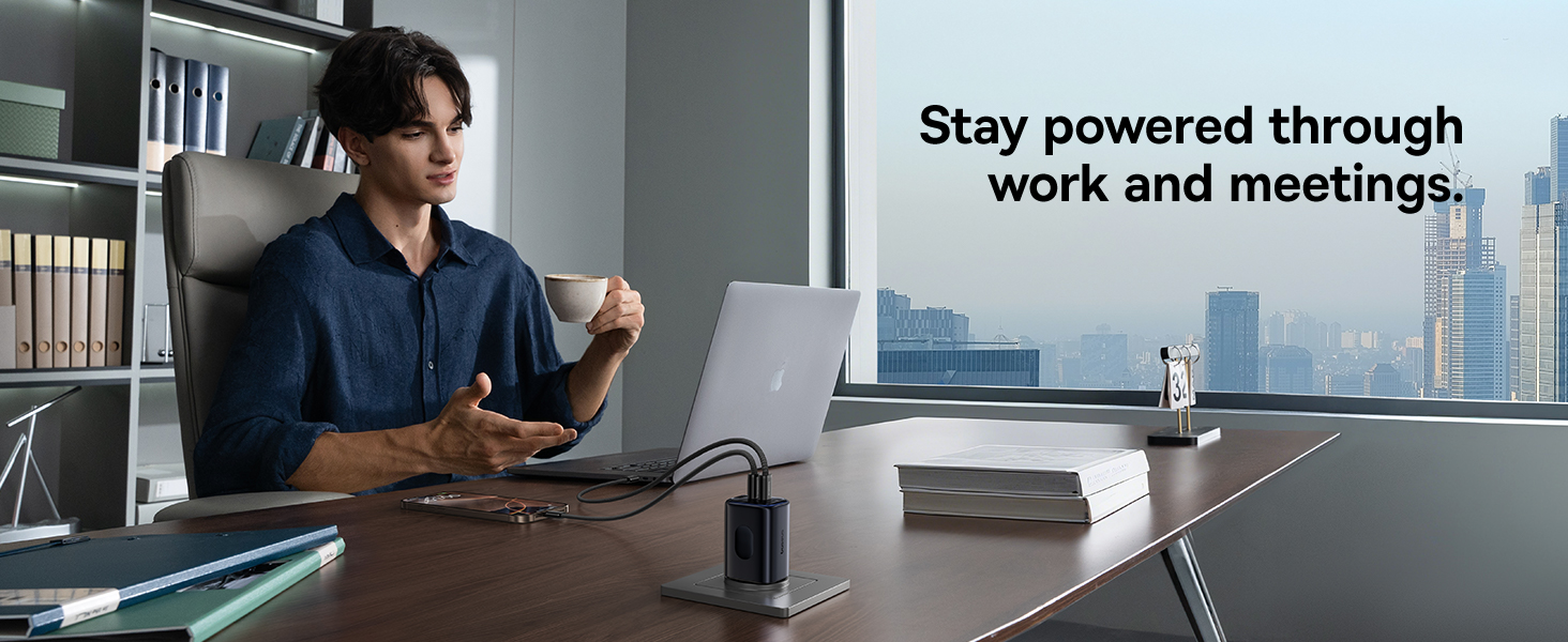 | Выход | Использование только одного порта: USB-C 1/2: 67W Max, 5V/3A, 9V/3A, 12V/3A, 15V/3A, 20V/3.35A USB-A: 5V/3A, 9V/2A, 12V/1.5A Max Одновременное использование двух портов: USB-C1 + USB-C2: 45W + 20W USB-C 1/2 + USB-A: 45W + 18W Одновременное использование трёх портов: USB-C1 + USB-C2 + USB-A: 67W |